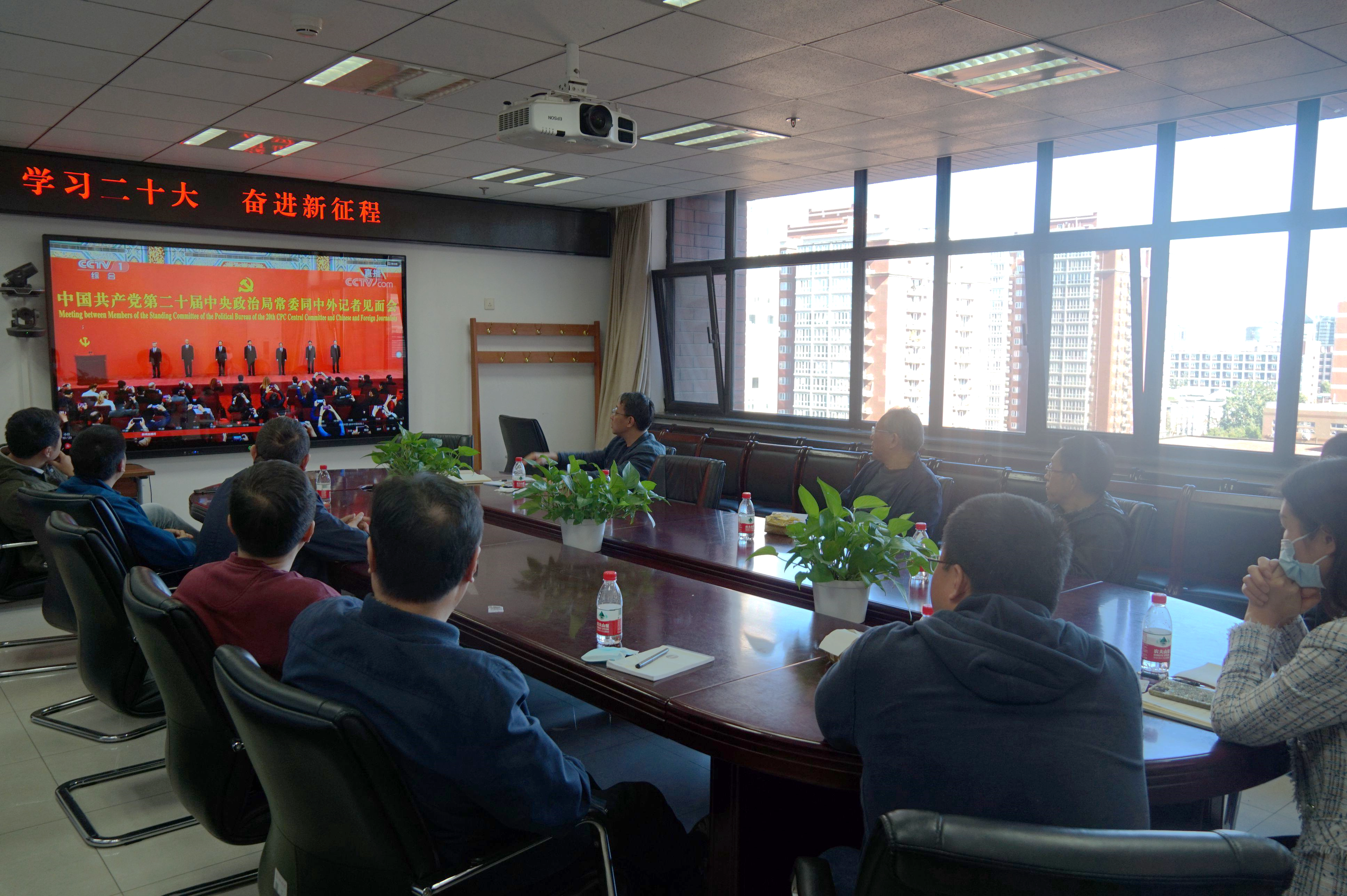10月23日上午,公司党委在明德国际楼813会议室设置视频会场,组织集体收看第二十届中央政治局常委同中外记者见面会,认真听取习近平总书记在新一届中央政治局常委同中外记者见面时发表的重要讲话。公司党政领导班子成员、党委委员、师生党支部书记、教职工代表参会学习、交流。