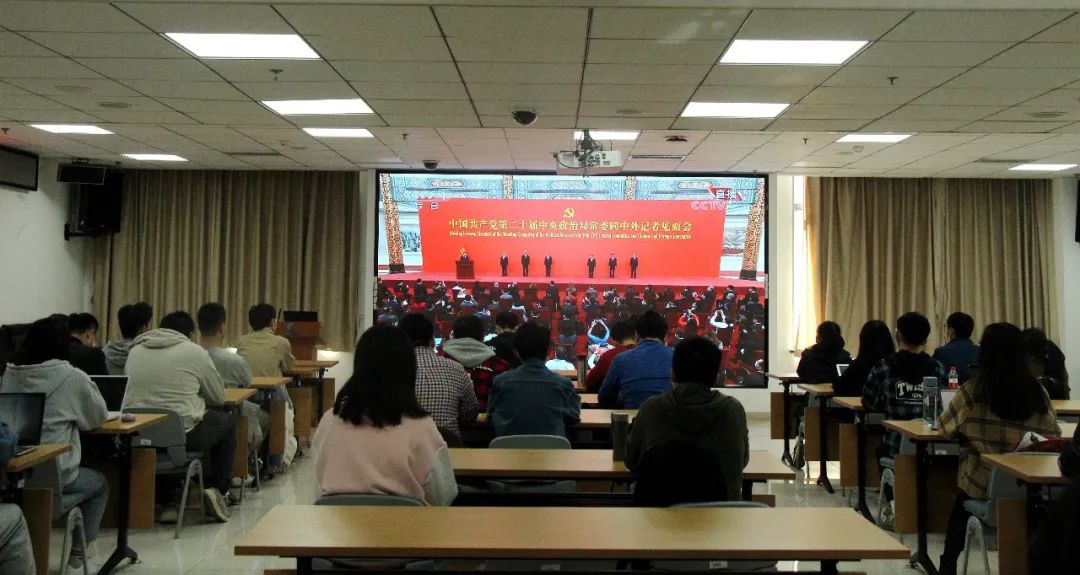 观看中外记者见面会后,全场掌声热烈,同学们积极讨论、分享学习感悟。大家一致表示,“百年成就无比辉煌,百年大党风华正茂”,全体同学将更加紧密地团结在以习近平同志为核心的党中央周围,深入学习贯彻习近平新时代中国特色社会主义思想和中国共产党第二十次全国代表大会精神。