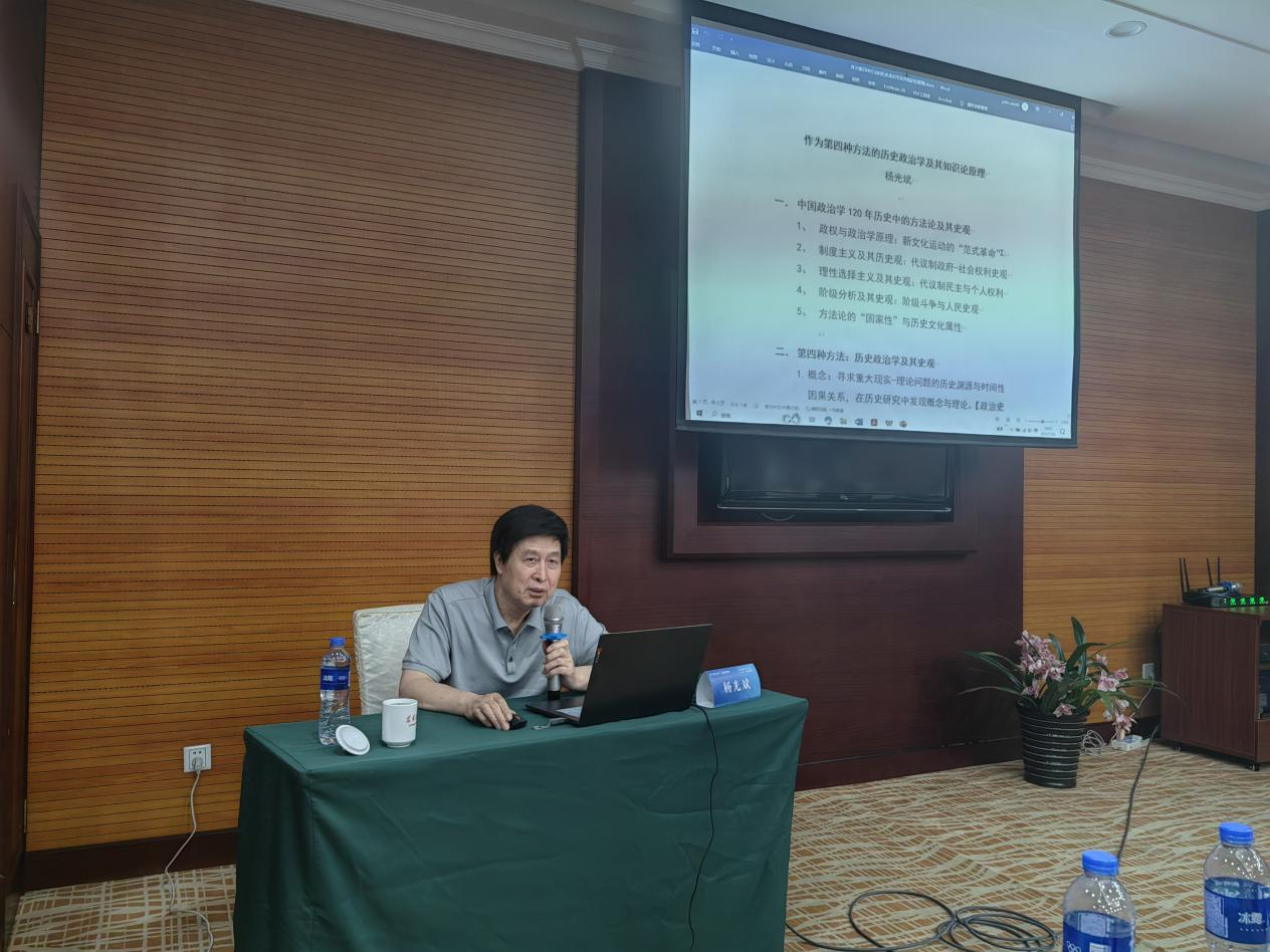 杨光斌教授首先对本届讲习班的授课教师和学员表示热烈欢迎。杨光斌教授强调了历史的重要性。就社会科学尤其是政治学学科史而言,每一种流行的方法论背后都存在根深蒂固的文化传统,而中国的文化传统即中国人视之为宗教的历史,每个中国人都是“历史学家”的文化传统正在被找回。杨光斌教授回顾了历史政治学的发展历程,在感谢精干的学术团队的同时也深切缅怀了朱云汉教授。他认为,在公司和公司的鼎力支持下,历史政治学蓬勃发展,如今已经形成一个学术共同体。历史政治学是中国政治学发展的新方向和新出路,尽管在范式内部和外部可能存在不同声音,但这都是正常的学术现象。最后,杨光斌教授以“除了历史,还有什么?”作为结尾,引发现场学员的无限思考。